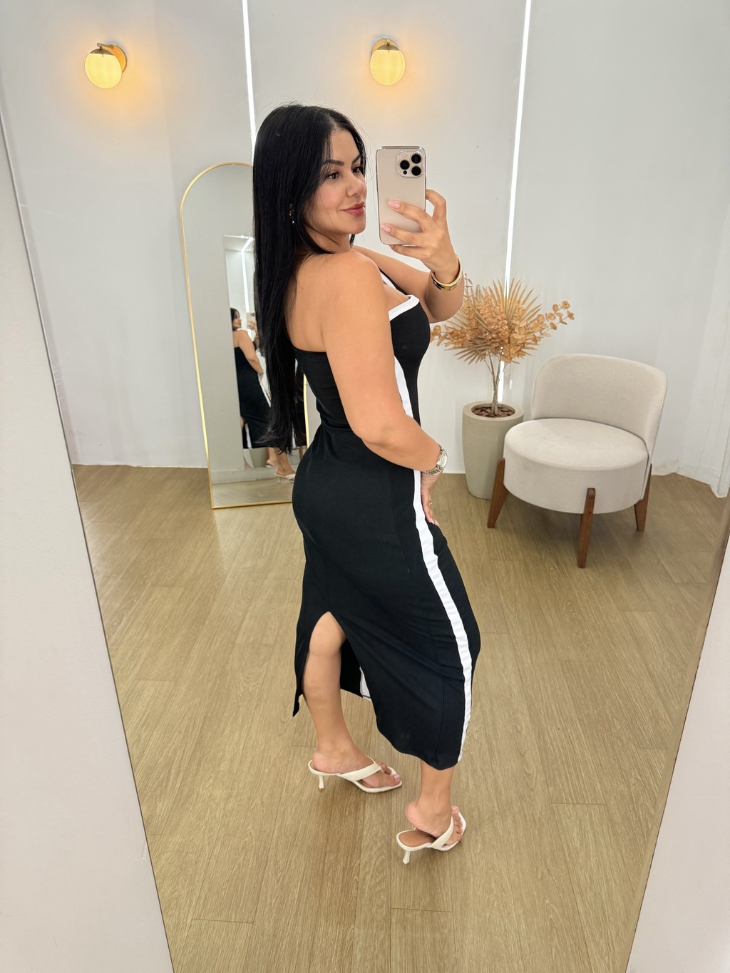 com bojo • tamanho único • aquele VESTIDO que  modela o corpo PERFEITAMENTE, sem marcar muito, com esses recortes branco que deixa a cintura super VALORIZADA. Veste até o 44.